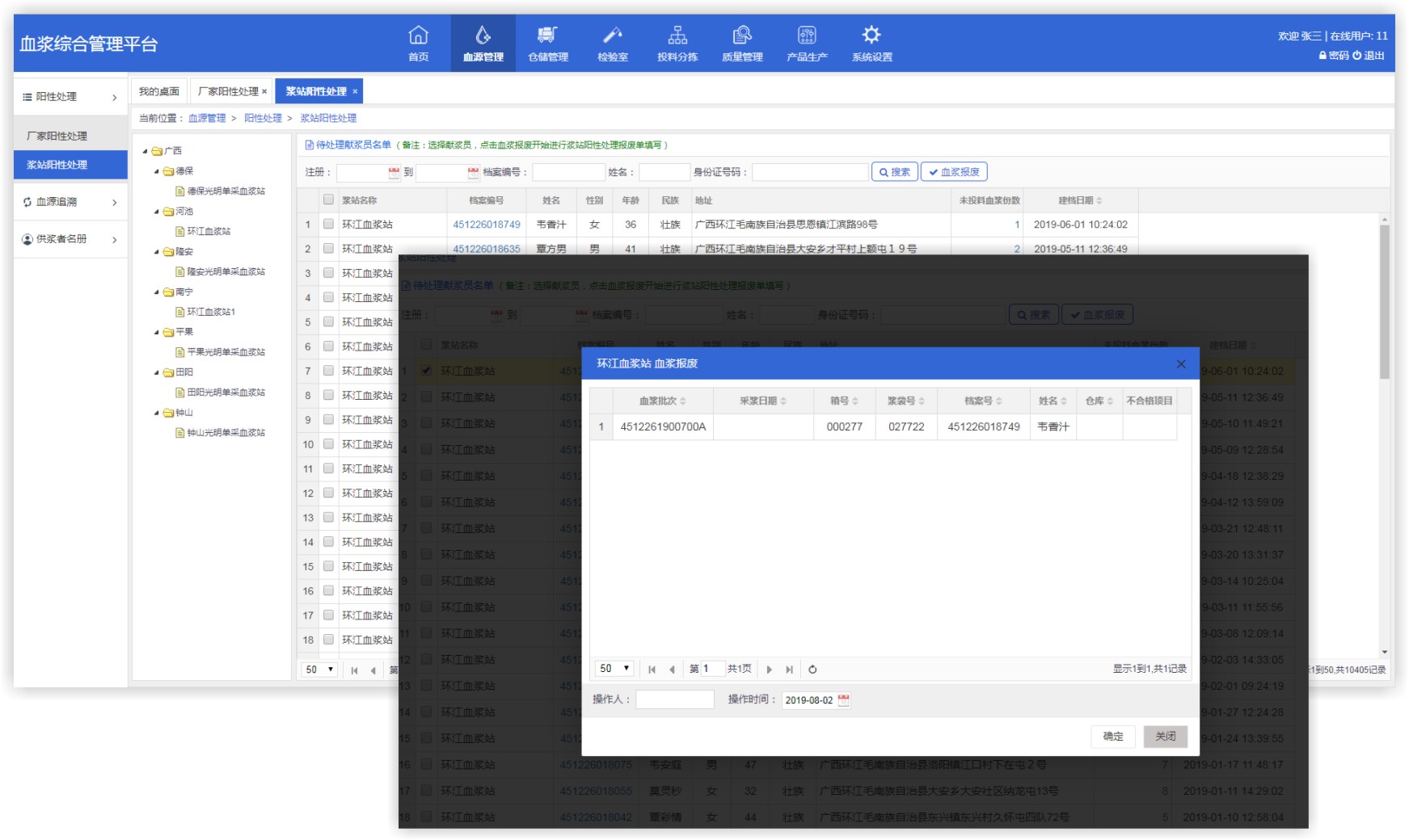通過中間層實(shí)現(xiàn)廠家和漿站實(shí)時(shí)同步,廠家陽性和漿站陽性通過中間層實(shí)時(shí)鎖定獻(xiàn)漿員和相應(yīng)的血漿,保證原料的安全。